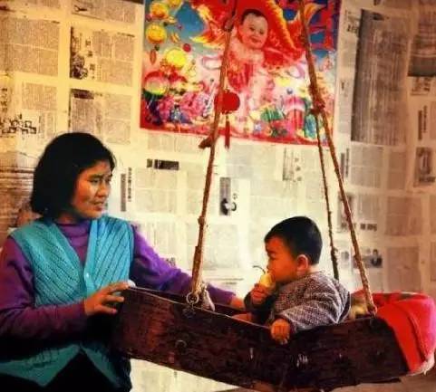 六七十年代,農(nóng)村里這樣帶娃娃的,娃娃坐在吊藍(lán)中。