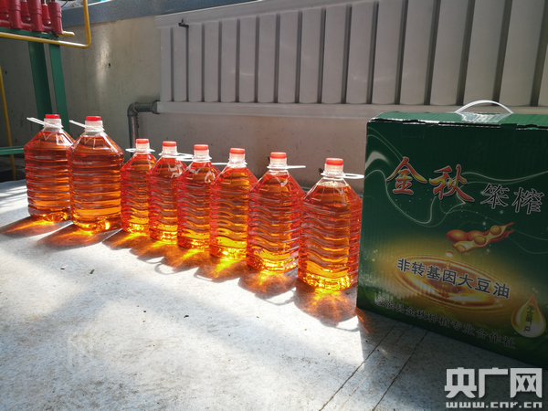 東北地區(qū)食用油以大豆油為主,對大豆油的需求十分龐大。楊志金是金秋笨榨大豆油作坊的負(fù)責(zé)人,他介紹說,他們采用的是笨榨的方法,類似古法壓榨,原材料都是合作社社員自家種植的非轉(zhuǎn)基因大豆,這種方式壓榨出來的大豆油口感好、顏色漂亮。超市里普通大豆油賣七八塊錢一斤,金秋笨榨大豆油能賣到15元一斤。