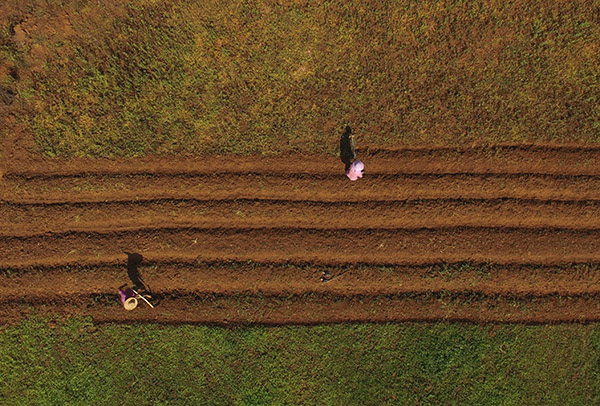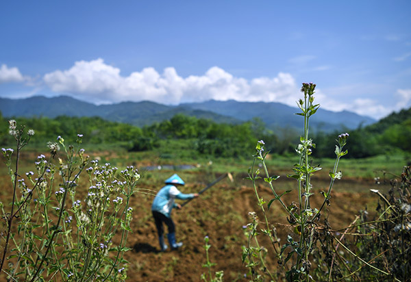 5月7日,在番陽(yáng)六村憂遁草種植基地,村民在翻整土地,準(zhǔn)備種植憂遁草。