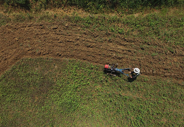 5月7日,在番陽(yáng)六村憂遁草種植基地,一名村民操作機(jī)耕機(jī)翻整土地,為種植憂遁草做準(zhǔn)備。