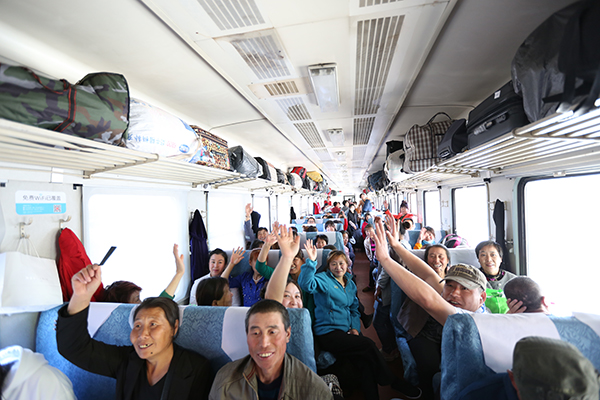 5月9日,插秧客乘坐插秧專列前往墾區(qū)。