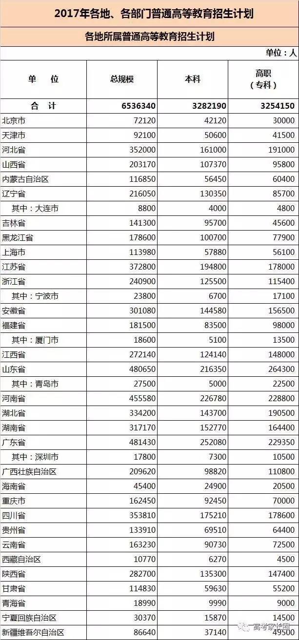 從隸屬關(guān)系看,全國普通高校招生計劃分為中央部門所屬高校招生計劃和地方所屬高校招生計劃。