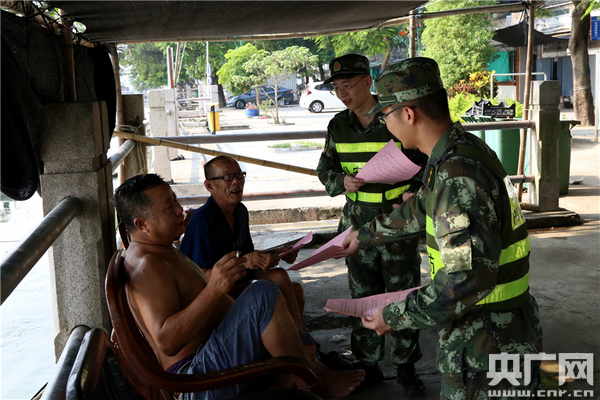 汕頭邊防支隊(duì)媽嶼邊防派出所官兵向轄區(qū)居民告知臺(tái)風(fēng)“天鴿”最新情況。周峰 攝