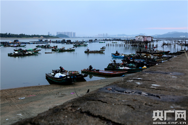 汕頭市濠江區(qū)漁民莊天攀:現(xiàn)在臺(tái)風(fēng)馬上到了,我要把漁排上的那些東西綁好、收好,還要加固那些錨和繩子。
