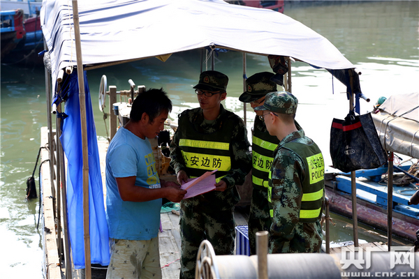 汕頭邊防支隊(duì)媽嶼邊防派出所官兵來(lái)到漁船上通報(bào)臺(tái)風(fēng)“天鴿”最新情況,宣傳防臺(tái)風(fēng)知識(shí)。周峰 攝