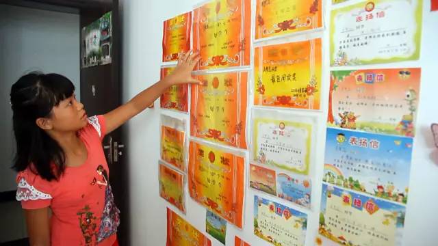 肖夢(mèng)蕊的房間里貼滿了獎(jiǎng)狀。還有一個(gè)梳妝臺(tái),是媽媽花200塊錢從舊貨市場(chǎng)上買的。時(shí)隔三個(gè)月再次見面,肖夢(mèng)蕊非常熱情,就像見到老朋友一樣。