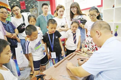 平定縣手工藝人現(xiàn)場表演制砂壺,吸引了一批小朋友圍觀。張美麗攝