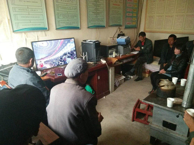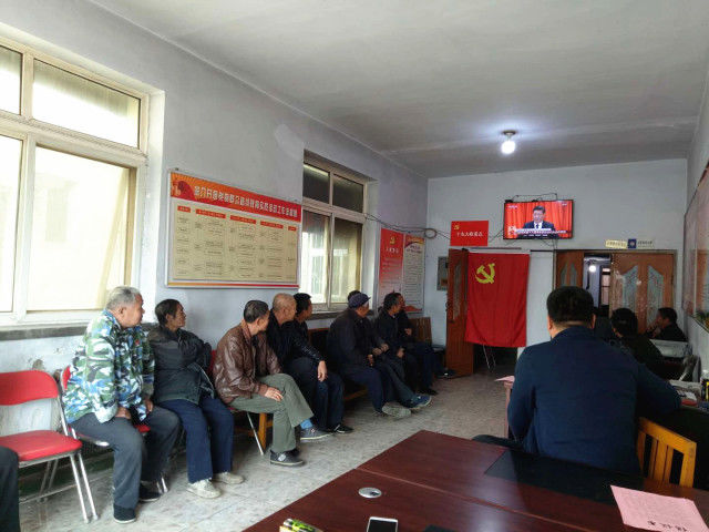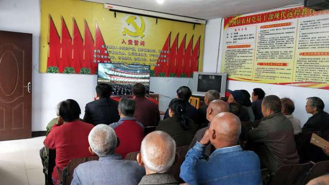 河南省林州市合澗鎮(zhèn)木纂村30多名黨員到村黨員活動(dòng)中心收看直播。(攝影:中國(guó)鄉(xiāng)村之聲農(nóng)民觀察員路春生)