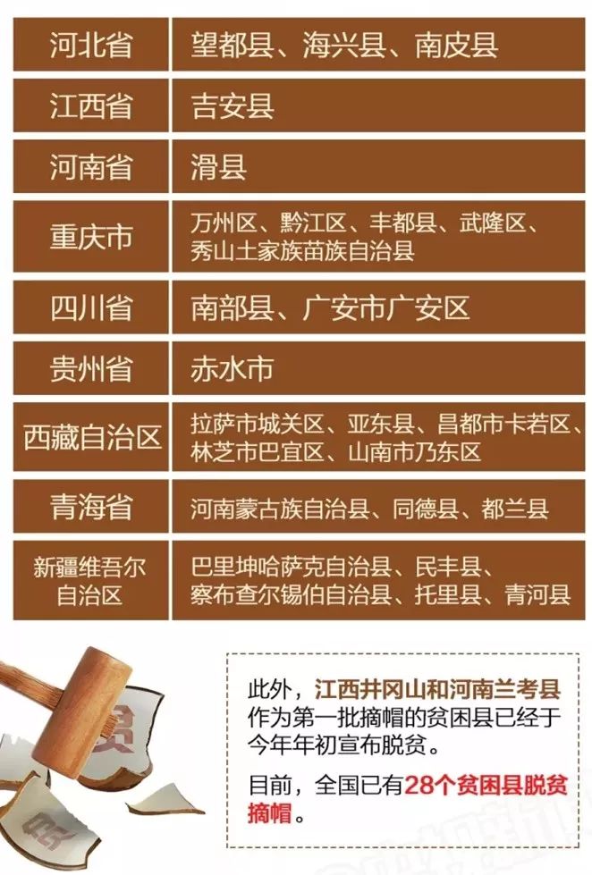 那么,脫貧摘帽的28個貧困縣市都是哪兒?“摘帽”的標(biāo)準(zhǔn)又是什么?退出后怎么保證不再返貧呢?