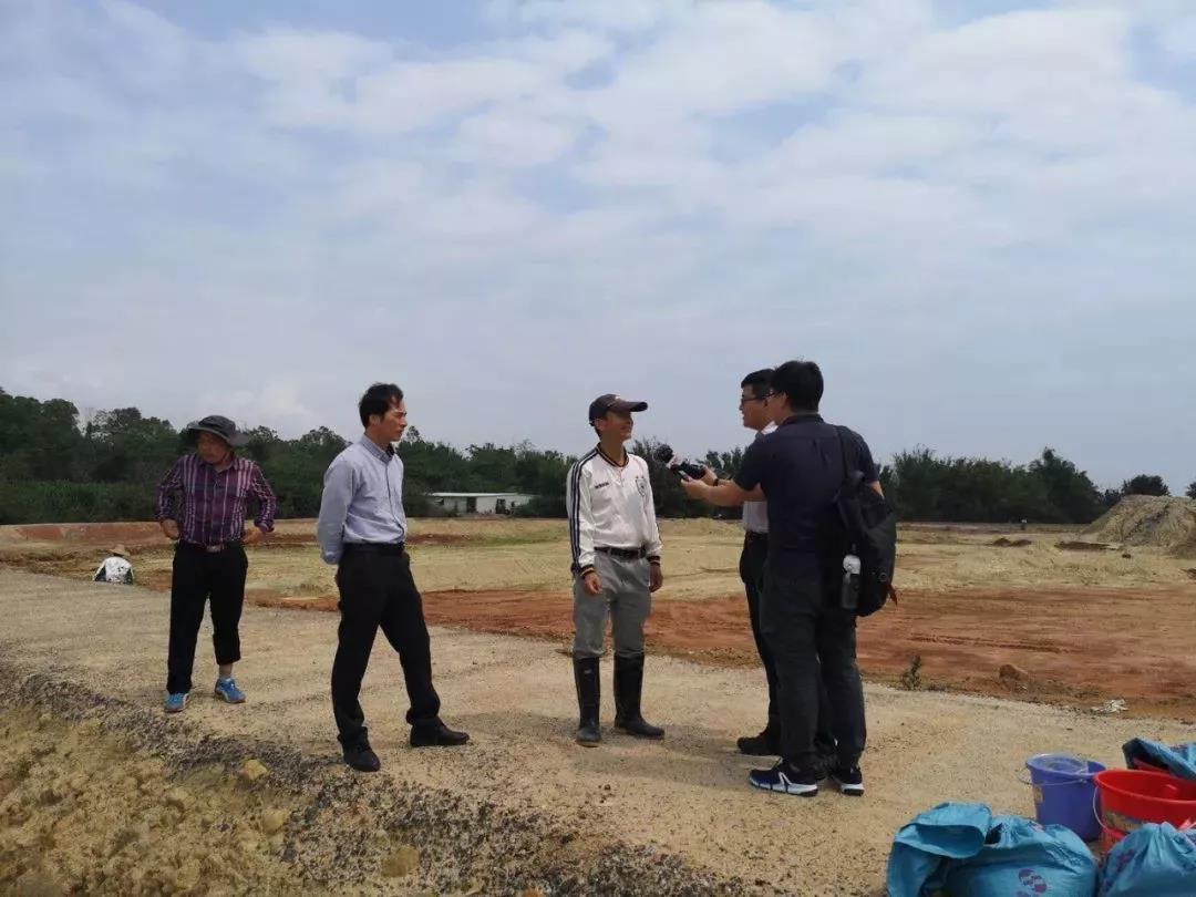記者采訪陳必南(右三)和陳論(左二)