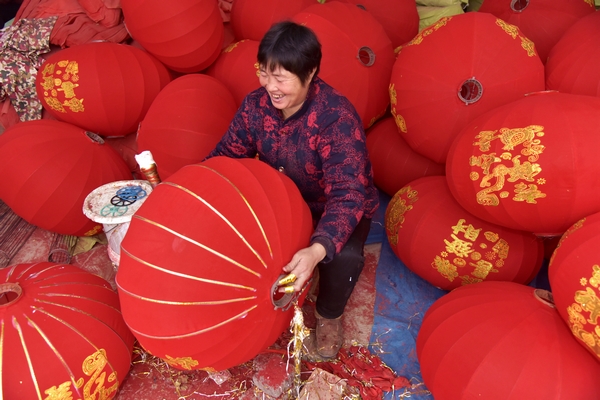 大紅燈籠最能凸顯節(jié)日的氣氛,在河南省?h西橋村燈籠場(chǎng)內(nèi),六十多歲的張愛(ài)鳳正在手工制作燈籠,她依靠勤勞的雙手每天能掙六十元左右,老大娘說(shuō),干到祭灶小年就不干了,掙了錢(qián)過(guò)好年。