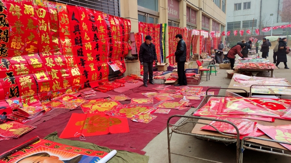 在鶴壁市明清古村落大胡村附近,有一個(gè)幾十年不變的賣(mài)對(duì)聯(lián)的地方,這里的對(duì)聯(lián)掛滿了墻,打工的人們回來(lái)后,這個(gè)地方就擠滿了人,都來(lái)買(mǎi)稱心如意的對(duì)聯(lián)。