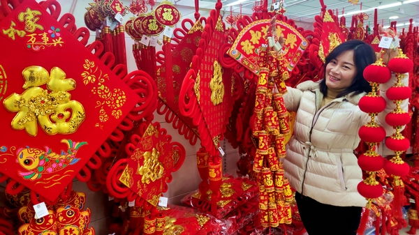 “年來(lái)到,年來(lái)到。小妞要花,小小要炮。”買(mǎi)幾串鞭炮和小燈籠裝飾一下自己院子,很有喜慶氣氛。圖為山村媳婦在買(mǎi)裝飾家庭的年貨。
