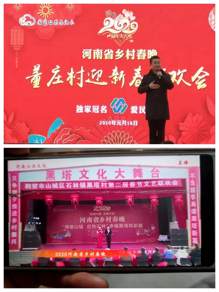 現(xiàn)在,農(nóng)村富余了,文化生活也豐富了,每個(gè)村都喜歡搞個(gè)鄉(xiāng)村春晚,這是鶴壁市石林鄉(xiāng)黑塔村和鶴壁市董莊村的春晚,遠(yuǎn)在他鄉(xiāng)的村民可以通過(guò)手機(jī)觀看直播。