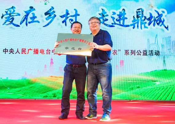 中央人民廣播電臺(tái)社教節(jié)目中心副主任陶煒為常德市鼎城區(qū)授“中國(guó)鄉(xiāng)村之聲愛在鄉(xiāng)村公益活動(dòng)示范點(diǎn)”牌匾。