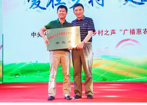 中央人民廣播電臺(tái)駐湖南記者站站長(zhǎng)蔣琦為常德人民廣播電視臺(tái)授“中央人民廣播電臺(tái)廣播惠農(nóng)工程示范臺(tái)”牌匾。