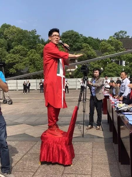 為了與現(xiàn)場觀眾更近距離互動,他主動走下舞臺,跑到觀眾席前,站在椅子上與大家一起合唱了歌曲《敢作敢當》。