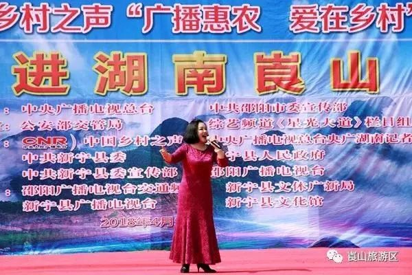 28日上午9時18分,“廣播惠農(nóng)愛在鄉(xiāng)村”系列公益活動文藝演出在崀山景區(qū)北大門正式開演,著名歌唱家于乃久、“賣菜大姐”張學(xué)敏、中央民族歌舞團青年歌唱家楊倩琳、央視星光大道實力男歌手袁忠山、央視星光大道3月月冠軍劉敏等通過表演戲曲、歌曲,為當?shù)厝罕、游客送上一臺文化盛宴。