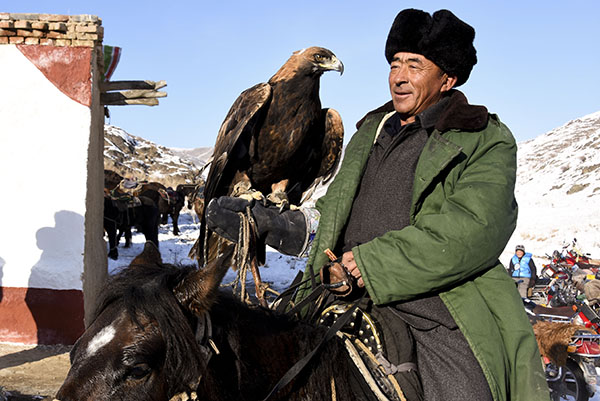 在距離塔城市300公里的托里縣多拉特鄉(xiāng)“冬窩子”哈拉包爾,阿克塞村村民騎馬趕來(lái)參加活動(dòng)(12月3日攝)。