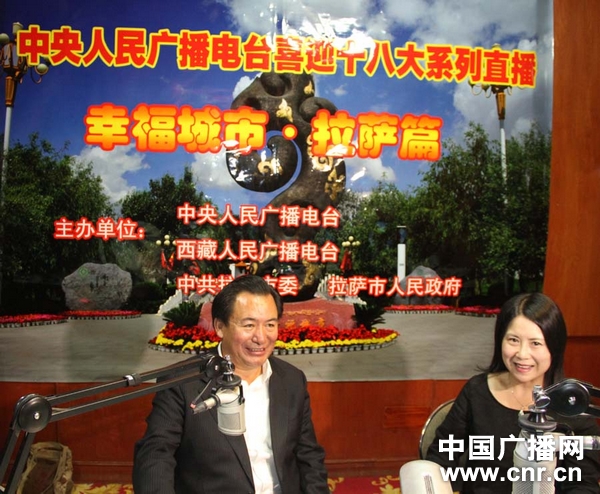 拉薩市委副書記、市長(zhǎng)多吉次珠與西藏電臺(tái)主持人文心在直播間