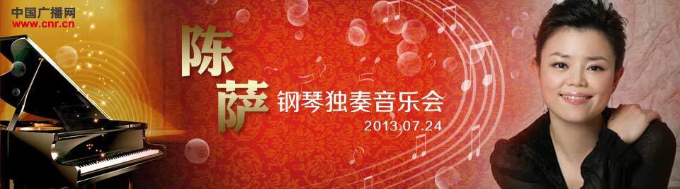 聆聽(tīng)民族經(jīng)典,共享藝術(shù)精品。中央臺(tái)文化發(fā)展工程今年將陸續(xù)推出一組大師系列音樂(lè)會(huì)。7月24日晚,中央人民廣播電臺(tái)音樂(lè)廳上演陳薩鋼琴獨(dú)奏音樂(lè)會(huì)。陳薩,中國(guó)新一代青年女鋼琴家。1979年生于重慶市,7歲學(xué)習(xí)鋼琴,9歲進(jìn)入四川音樂(lè)學(xué)校師從但昭義教授,從10歲開(kāi)始,便屢獲大獎(jiǎng),包括中國(guó)全國(guó)少年鋼琴邀請(qǐng)賽少年組第一名、"珠江杯"全國(guó)少年鋼琴邀請(qǐng)賽專(zhuān)業(yè)組第一名、首屆中國(guó)國(guó)際鋼琴比賽青年組第一名。