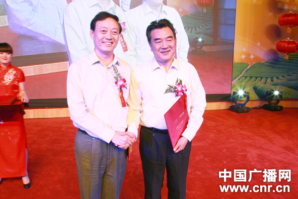 中央人民廣播電臺臺長王求(右一)和國家農(nóng)業(yè)部副部長余欣榮