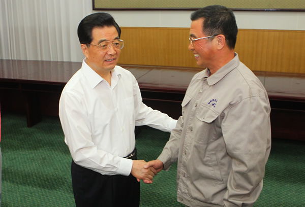 中共中央總書記、國家主席、中央軍委主席胡錦濤等領(lǐng)導(dǎo)同志親切接見《郭明義》劇組主創(chuàng)人員。話劇《郭明義》是我省按照中央和省委領(lǐng)導(dǎo)指示精神,為進一步宣傳學(xué)習(xí)郭明義同志的感人事跡和弘揚郭明義的崇高精神,組織創(chuàng)作排演的大型話劇。