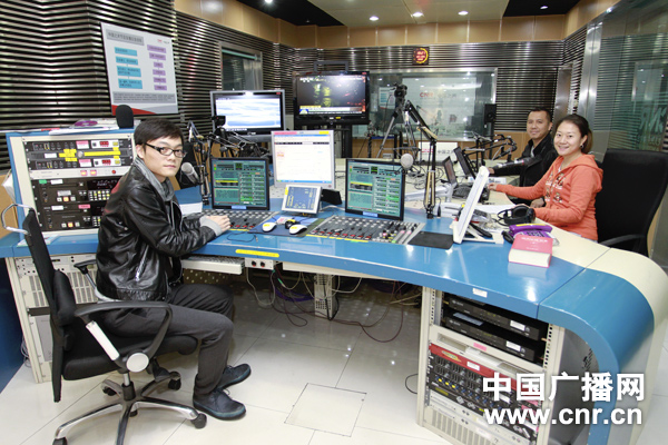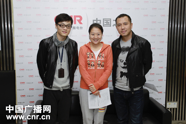 胡凡、章瑩瑩、田龍在《中國大舞臺》節(jié)目直播前合影