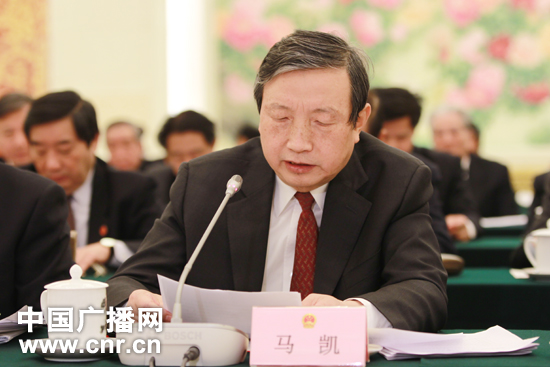 國(guó)務(wù)委員兼國(guó)務(wù)院秘書長(zhǎng)馬凱同志發(fā)言(中廣網(wǎng)記者徐陽 攝)