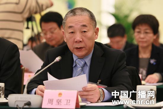 湖北省人大常委會(huì)副主任周堅(jiān)衛(wèi)同志發(fā)言(中廣網(wǎng)記者徐陽 攝)