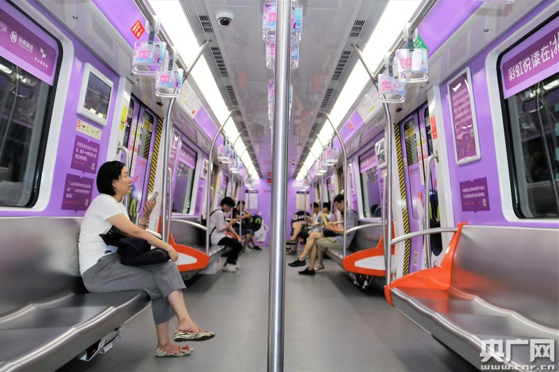 陳先生笑著說(shuō):“這輛列車(chē)很新鮮!以前一坐地鐵就拿出手機(jī)看,現(xiàn)在地鐵上的文字吸引了我們的注意力,營(yíng)造這樣的閱讀氛圍,對(duì)于孩子來(lái)說(shuō)意義很大!钡罔F工作人員告訴記者,彩虹悅讀專(zhuān)列每天共有14趟,從6:23到19:27,坐2號(hào)線的市民朋友都有機(jī)會(huì)偶遇“書(shū)香列車(chē)”。
