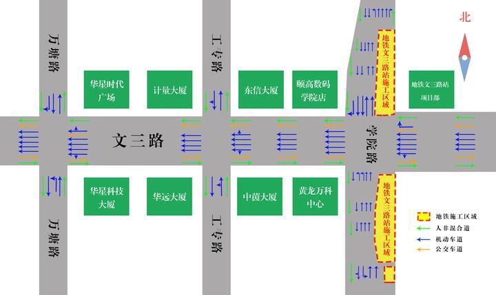 據(jù)悉,文三路站一期施工工期約4個(gè)月,具體交改圖示如下: