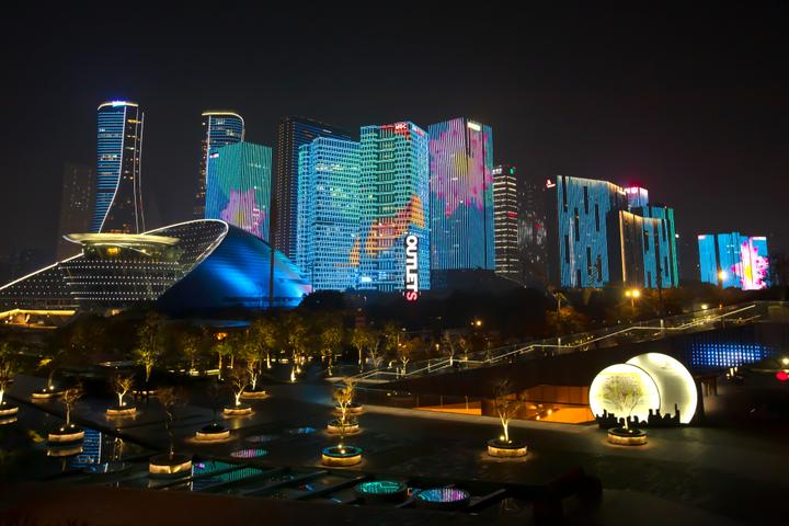 “錢(qián)江新城互動(dòng)光影秀以宣傳杭州文化、活躍城市空間為原則,增強(qiáng)城市活力,提升夜經(jīng)濟(jì)品質(zhì),創(chuàng)造獨(dú)特的光影藝術(shù),對(duì)城市陽(yáng)臺(tái)江堤步道、音樂(lè)噴泉及下沉廣場(chǎng)、淺水池、廣場(chǎng)樹(shù)陣、陽(yáng)臺(tái)玻璃房等5種載體進(jìn)行燈光提升!笔绣X(qián)江新城管委會(huì)生態(tài)文化處負(fù)責(zé)人介紹說(shuō)。