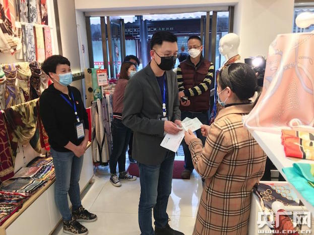 在對杭州新潔繡絲綢有限公司、杭州儲秀紡織品有限公司等率先申請的4家絲綢企業(yè)進行核對后,2月25日下午,長慶街道辦事處主任、杭州中國絲綢城管委會主任袁俊第一時間來到商鋪,為企業(yè)送上了復(fù)工“大禮包”。