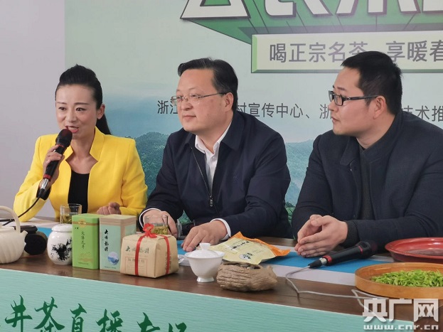 “這是我第一次參加直播活動,能為新昌茶農(nóng)吆喝、為大佛龍井吆喝,非常開心。這樣的活動很有意義!眳⒓蝇F(xiàn)場直播的新昌縣副縣長呂田表示。