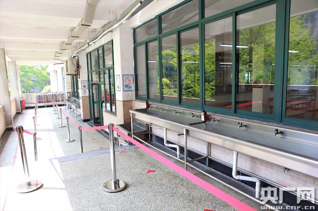 “在下周高三學(xué)生復(fù)課之前,我們已經(jīng)對學(xué)生進入食堂的線路包括學(xué)生用餐的位置都做了定點定人的處理。學(xué)生在進入食堂就餐之前需要用免洗洗手液進行手部消毒工作,而食堂門口排隊則是按照地上標注的每個紅點一個人,間隔一米排隊”,長征中學(xué)副校長朱理清告訴記者。