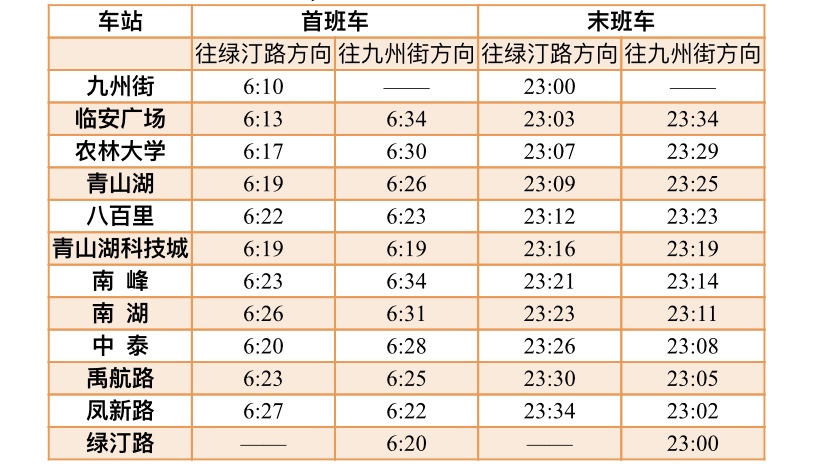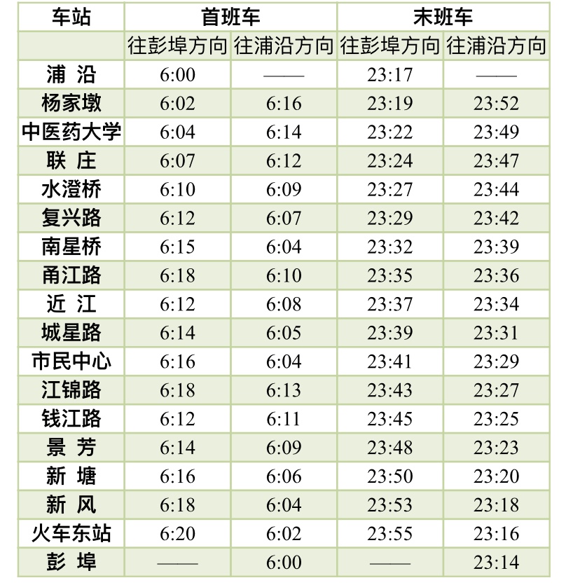 1號(hào)線首末班車時(shí)間(6月24日、6月27日,延時(shí)半小時(shí))