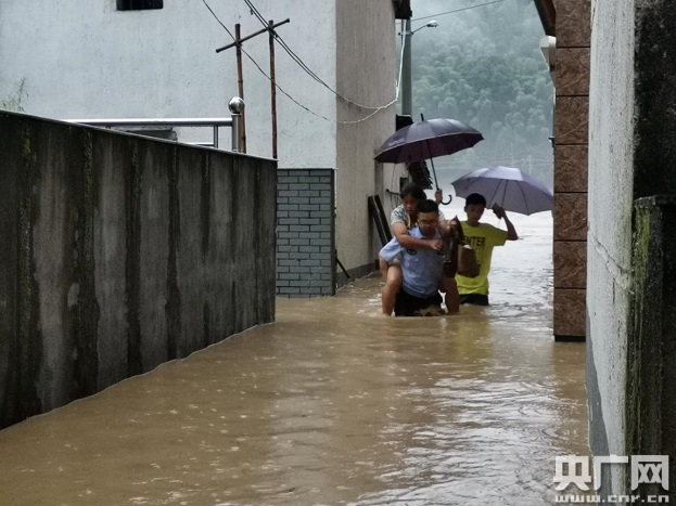 “咚咚咚!”一陣急促的敲門聲。清晨6點,臨岐鎮(zhèn)臨岐村附近的溪流水位線暴漲,不少房屋開始浸水,還在熟睡中的村民洪小女被巡查的村兩委干部叫醒并勸阻撤離。50歲的洪小女家住臨溪的一幢矮房,此時屋子浸水已到腰部,但是因為舍不得家中物品,無論村干部如何勸說都不肯離開。情急之下,臨岐派出所民警張峰不經(jīng)思索就沖進洪小女家中,將洪小女背起趟水轉(zhuǎn)移!爱敃r水深已經(jīng)超過0.6米了,不能再猶豫。洪大姐一定會理解我們工作的!币咽桥R岐村入黨積極分子張峰說。