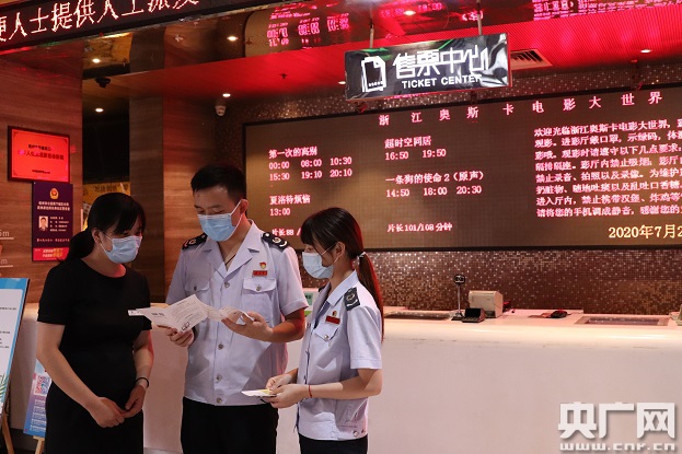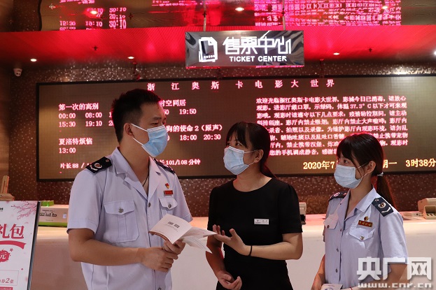 7月20日零點(diǎn),全國影院復(fù)工后第一場電影在位于杭州的浙江時(shí)代電影院線杭州奧斯卡影城放映。當(dāng)日,杭州市稅務(wù)部門來到杭州奧斯卡影城,為復(fù)工影院送上稅費(fèi)優(yōu)惠政策解讀。復(fù)映首日,影城排了十場電影,據(jù)介紹,按照30%上座率安排可售的座位售出超80%。影城財(cái)務(wù)負(fù)責(zé)人楊雁表示,及時(shí)到位的稅費(fèi)優(yōu)惠政策,相當(dāng)于給影院的一帖“定心丸”。