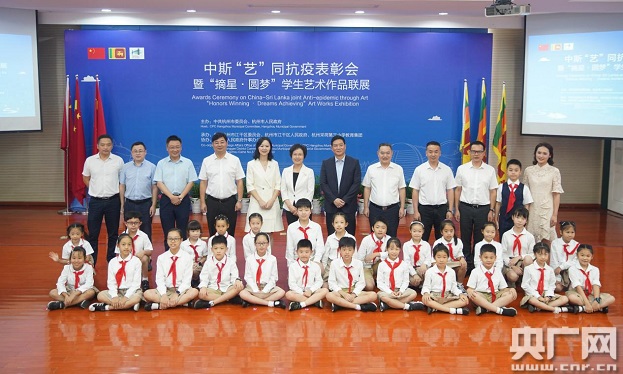 據(jù)了解,本次藝術(shù)展以“攜手抗疫”為主題,不僅加深了學(xué)生的愛國主義情懷,還促進(jìn)了中國文化的傳承,更是通過校園美育,讓“中斯”友誼更深厚。2019年年底,杭州采荷第三小學(xué)教育集團(tuán)組織采三學(xué)子參加斯里蘭卡“MANJAREE2020”國際繪畫比賽,榮獲一、二、三等獎30個。今年疫情期間,學(xué)校還開展了“抗‘疫’主題書畫展”“詩詠英雄,致敬逆行者”“聲援戰(zhàn)‘疫’”“聲動采三”等線上抗疫主題活動。