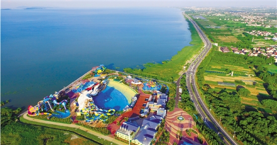 圖為美麗的濱湖大道,蜿蜒伸向水天相接的遠(yuǎn)方