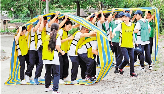 8月21日,在景寧畬族自治縣紅星街道崗石村,來自杭州新新飯店的員工在進(jìn)行戶外運(yùn)動(dòng)拓展訓(xùn)練。近年來,景寧畬族自治縣依托生態(tài)優(yōu)勢,相繼推出戶外運(yùn)動(dòng)拓展訓(xùn)練、娛樂性軍事訓(xùn)練等健康產(chǎn)業(yè)休閑旅游項(xiàng)目,吸引大批游客。