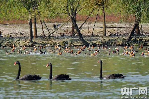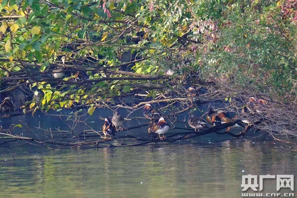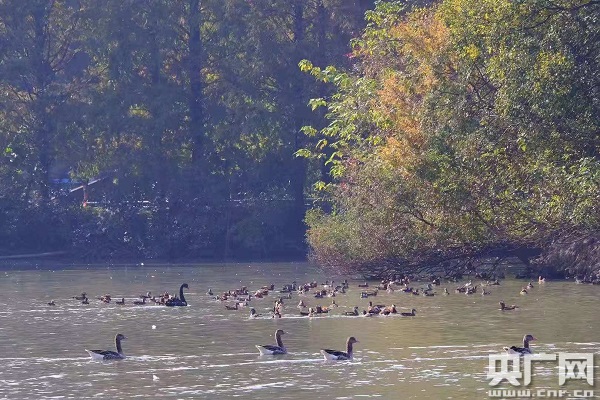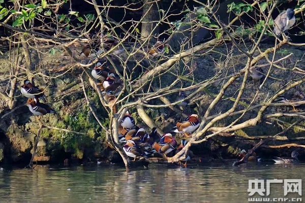 央廣網(wǎng)寧波11月14日消息(記者曹美麗 通訊員張海華) 天氣漸冷,候鳥紛紛南下越冬。最近,寧波雅戈?duì)杽?dòng)物園的水禽湖里忽然飛來了上千只野生鴛鴦。它們從北方而來,相中了動(dòng)物園水禽湖這塊既不愁食物又安全的寶地,到這里過冬了!
