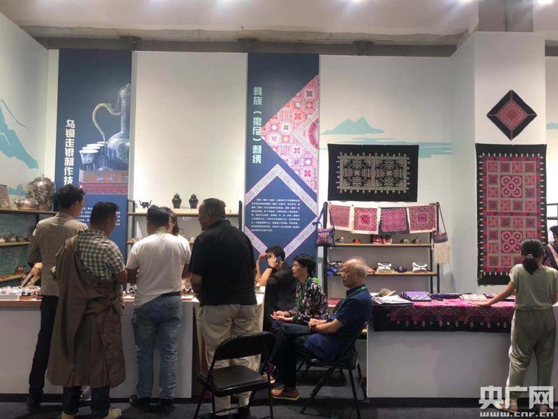 記者還在現(xiàn)場(chǎng)看到了來自全國各地的傳統(tǒng)非遺技藝。在“滇黔湘藏”四省區(qū)“非遺+扶貧”展銷活動(dòng)區(qū),來自云南、貴州、湖南、西藏四。▍^(qū))具有地域特色的傳統(tǒng)技藝項(xiàng)目集中進(jìn)行展示,其中藏族唐卡、湖南土家織錦技藝、寶慶竹刻等展區(qū)以其獨(dú)特的技藝和精美的工藝品吸引眾多參觀者駐足欣賞。