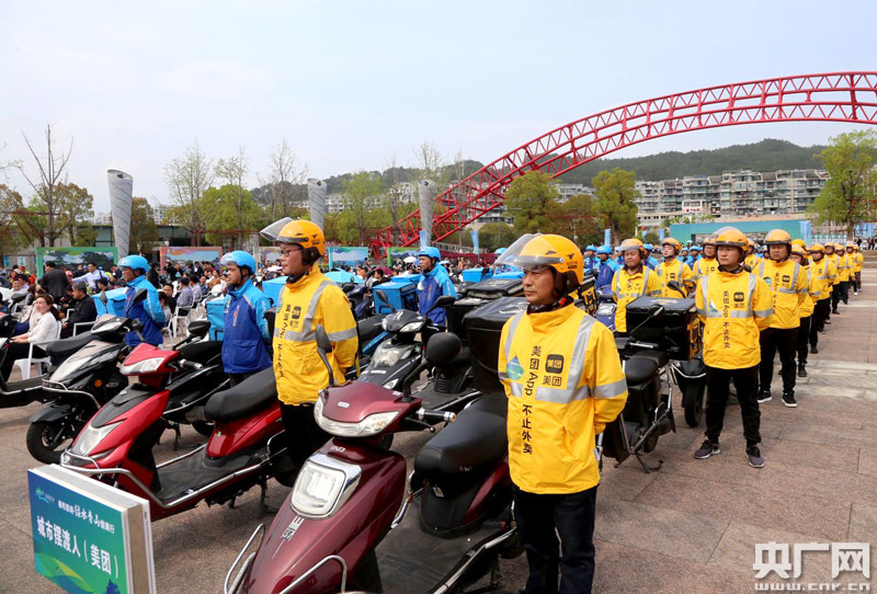 外賣騎手“城市擺渡人”代表在活動(dòng)現(xiàn)場(chǎng)