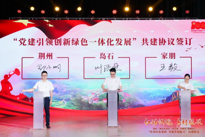 為慶祝建黨一百周年、全面推進鄉(xiāng)村振興,6月17日,浙皖三地革命老區(qū)(島石鎮(zhèn)、家朋鄉(xiāng)、荊州鄉(xiāng))“傳承紅色基因,共促鄉(xiāng)村振興”活動在杭州市臨安區(qū)島石鎮(zhèn)正式啟動。
